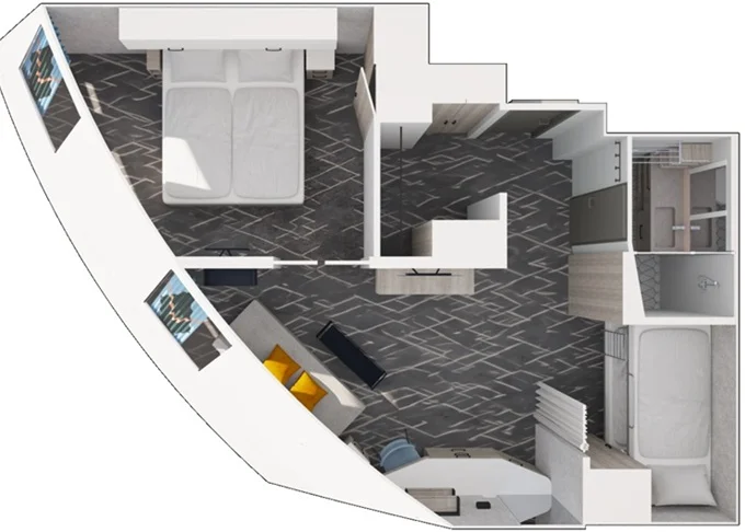 | JKCO - Junior Suite s balkónom C 26 m² + balkón 7 m² so stoličkami a podnožkami. 7. paluba. Max 4 osoby. Výhody Junior Suite. | 7 347 € 7 347 € za osobu | ||